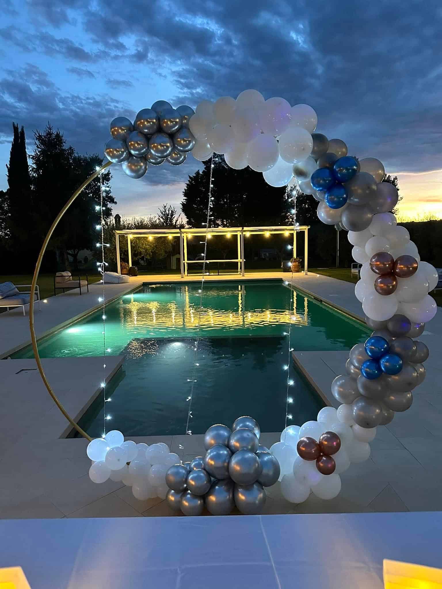 cerchio palloncini oro rosa e rosa con numero anni in palloncino foilCerchio tema unicornoCerchio palloncini oro e bianco con sfondo luccicosocerchio palloncini dalle sfumature di rosa cerchio palloncini argento bianco blu elettrico e oro rosacerchio e numeri luminosicerchio palloncini tema natale
